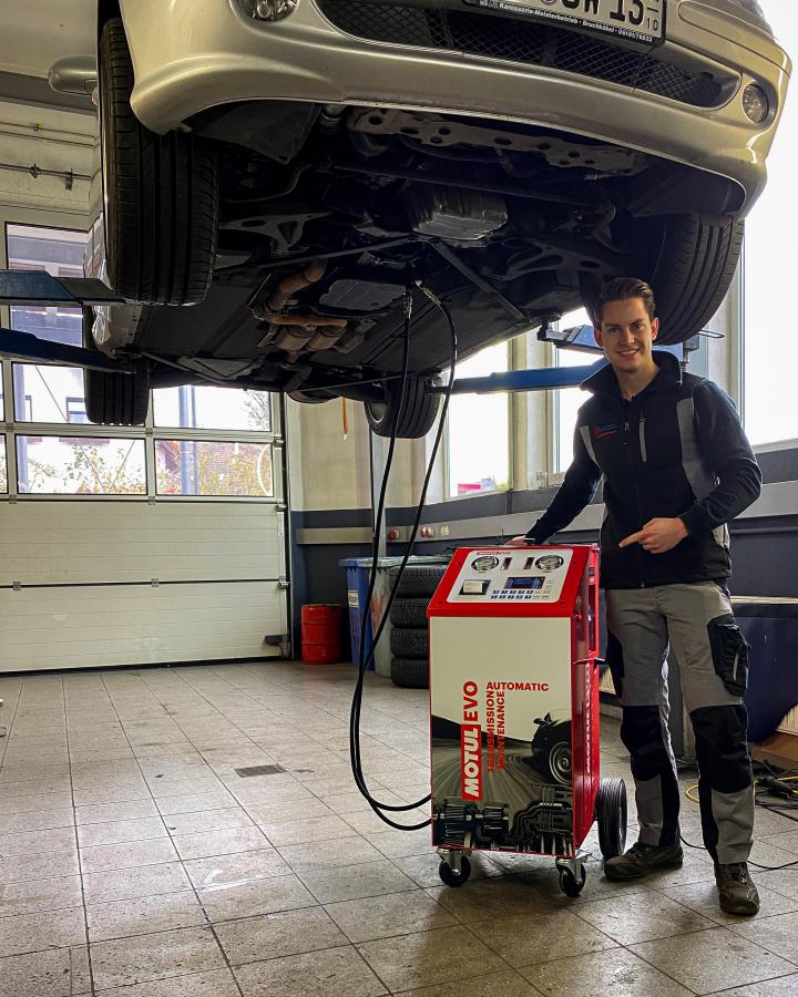 Zum Leistungsspektrum des MotulEvo-Programms zählen sowohl technischer Support bei der Anwendung der Motul Getriebeöle und des Spülungsgeräts als auch eine technische Datenbank, die Anleitungen und Sicherheitshinweise umfasst, um eine vollständige Getriebespülung sowie einen Getriebeölwechsel zu gewährleisten. Im Zuge der Automatikgetriebespülung wird das Altöl vollständig aus dem Getriebe entfernt und das neue Getriebeöl eingefüllt.